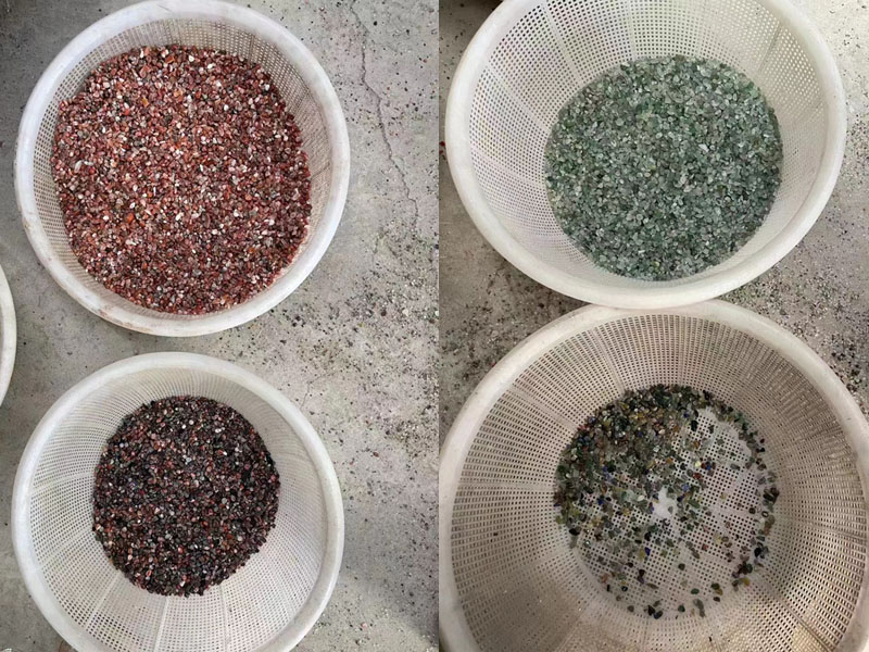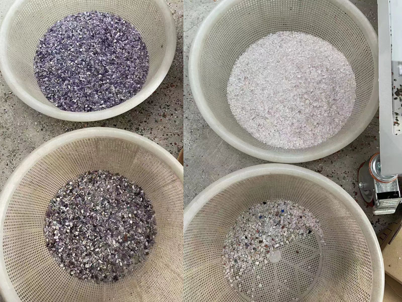 智能彩色寶石色選機(jī)分選系統(tǒng)由出料斗、高速電磁閥、空氣壓縮機(jī)及空氣過濾凈化器等附件組成。 出料斗由 前后兩個(gè)腔組成 ,按照自定義色選模式分離被色選物料的成品和次品。兩側(cè)配有吸塵口。 由 于被選物料在經(jīng)過高速電磁閥噴射后動(dòng)能大, 因此出料斗空間要足夠大 ,并且在物料與出料 斗接觸部位采取減震措施。防止被選物料反彈二次進(jìn)入 CCD 鏡頭探測(cè)區(qū)內(nèi),造成誤選現(xiàn)象發(fā)